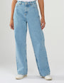 Damjeans med vida & raka ben i 100% återvunnen bomullsdenim. Stentvättad & blekt look.