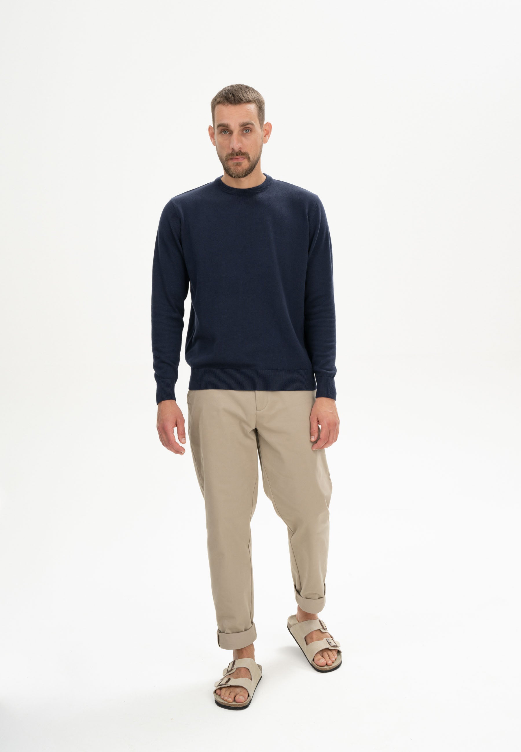Fint stickad herrtröja i 100% förtvättad ekologisk bomull som håller formen bättre & inte minskar risken för krympning. Lite tunnare vår & sommarkvalitet som håller dig sval & fräsch under årets varmare halva. Tröjan har muddar vid ärmslut samt runt midjan. Hållbart producerad från frö till hylla.
