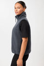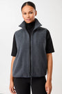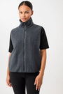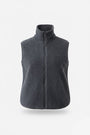 Väst som får sin mjuka teddy-look tack vare en högkvalitativ materialmix bestående av ekologisk ylle, ekologisk bomull & återvunnen nylon. Västen har en rak, bekvämt lös passform: perfekt över tunna tröjor & blusar samt behagligt varm under friluftsjackor och kappor. En lång dragkedja längs hela längden möjliggör olika stylingalternativen. Den höga kragen kan bäras med dragkedjan tätt upptill eller lämnas öppen.