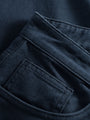 Klassiska herrbyxor i 100% ekologisk bomullstwill. Marinblå byxor med 5st fickor & en avslappnad passfrom med något avsmalnande ben.