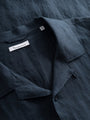 Mörkblå Box Short Sleeve Shirt är en kortärmad herrskjorta från KCA i 100% ekologisk lin. Lätt & ledig stil med snygg kubansk krage. Likt en bowlingskjorta fast ändå inte. Detta är en ny modell för 2023 som är mer avskalad än tidigare då man skippat bröstfickan, tonat ned knaparna samt skippat button-down för en flat-collar istället.