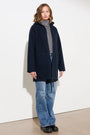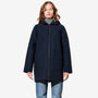 Det för Langerchen unika materialet består till 75% av ekologisk ylle. Ullen är certifierad av EU-blomman och garanterar att djuren inte utsatts för mulesing eller antiparasitära medel som tyvärr är så vanligt inom ullindustrin. Textilen innehåller även 15% ekologisk bomull samt 10% polyuretan. Denna unika struktur skapar skapar ett mycket regnavstötande plagg som dessutom andas riktigt väl. Kokad ylle är dessutom väldigt slitstarkt så man behöver inte se denna kappa som ett delikat plagg som inte tål tuffa tag.