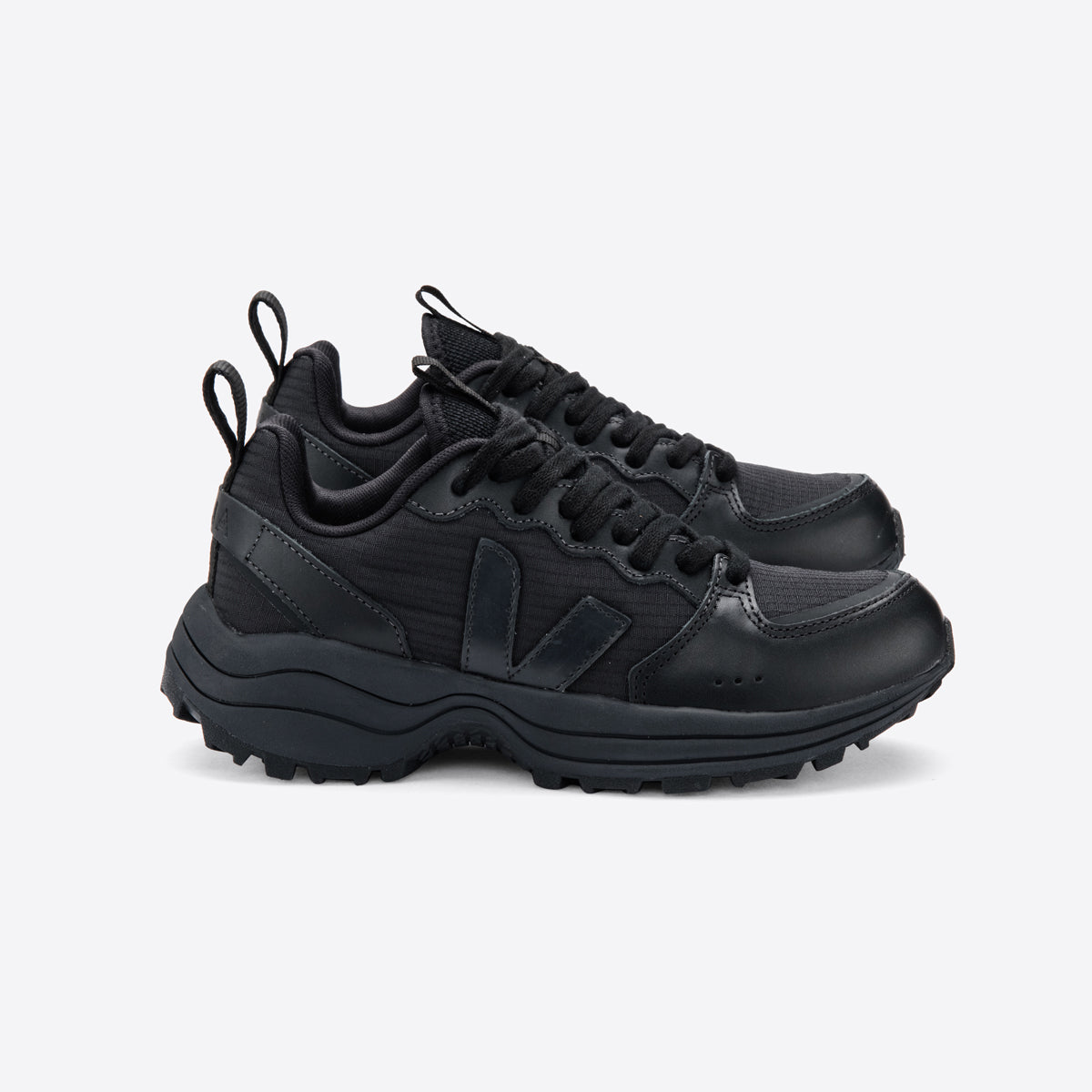 Venturi Ripstop Black från VEJA är en modern & hållbart producerad unisex-sneaker med en överdel av skinn & återvunnen polyester. Veja fokuserar alltid på hållbara material såsom vildgummi, återvunnen bomull, ekologisk bomull, jute & återvunnen polyester. Venturi är helt klart en modell som känns lite mer modern i sin konstruktion och ett lyft när det gäller komfort & ergonomi. En bättre sko på flera sätt!