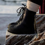 Överdelen har en 7mm tjock yllefilt samt en hög kant av gummi som skyddar mot blöt snö & slask. Inte helt olikt gummerade vandringskängor.