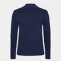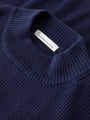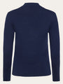 En lite tunnare tröja i fantastiskt mjuk merinoull. En slimmad silhuett och vacker marinblå färg gör den till ett flexibelt plagg som enkelt kan matchas med det mesta samtidigt som ribbningen och den lite högre halsringningen ger en snygg och tydlig profil.